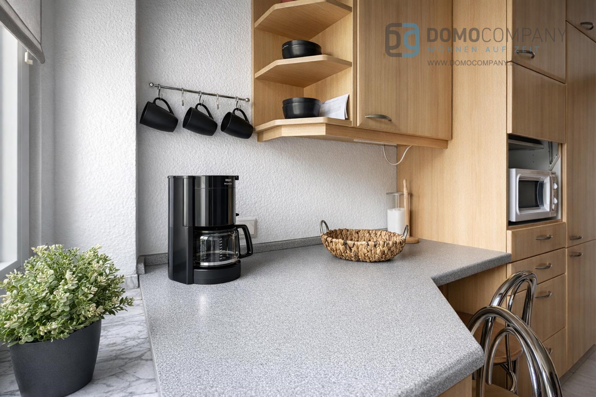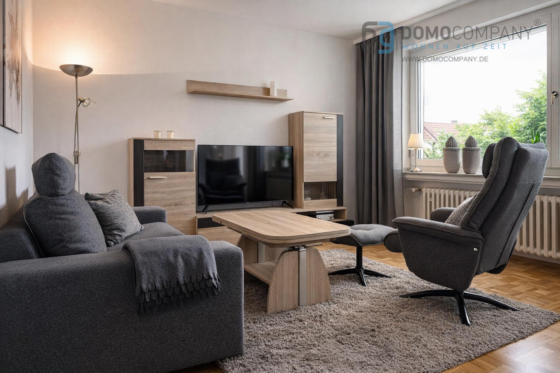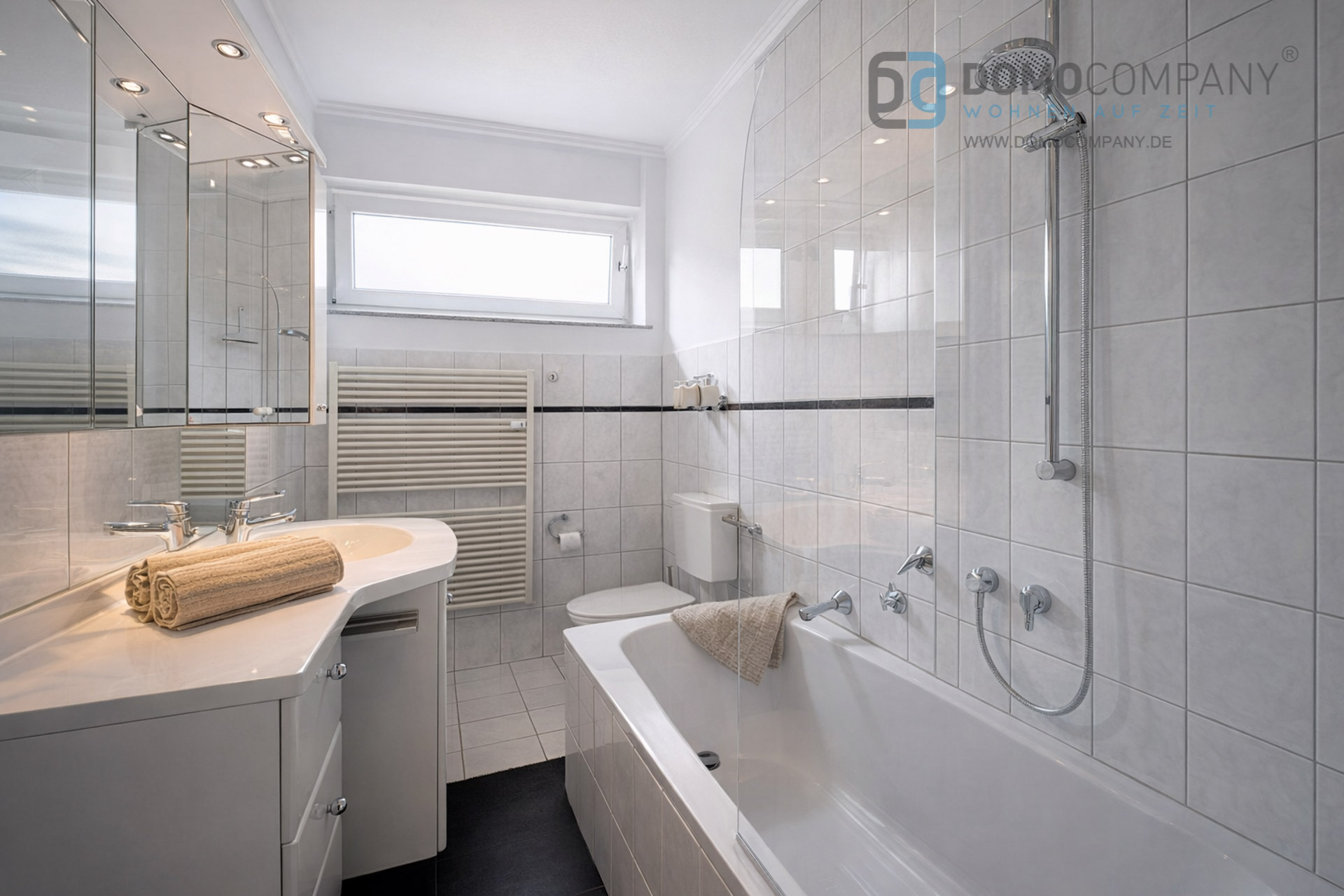 Hier bieten wir Ihnen eine schöne 2-Zimmer-Wohnung mit richtig großem Balkon. Sie befindet sich im ersten Stockwerk in einer ruhigen Sackgasse. Zur Ausstattung gehören u.a. Parkett, ein Flatscreen-TV, eine Geschirrspülmachine, eine Waschmaschine mit integriertem Wäschetrockner (in der Küche), ein großer Balkon, und ein Kellerraum. Das Bett ist 1,80 x 2,00m groß. Ein Telefon-/Internetanschluss kann bei Bedarf auf eigenen Namen und eigene Rechnung bei einem Anbieter eigener Wahl angemeldet werden. Kurzum: eine schöne Wohnung zum wohlfühlen. Bei 2 Wohnraumnutzern beträgt die Miete EUR 1.280,-. Für die Endreinigung werden EUR 150,- berechnet.