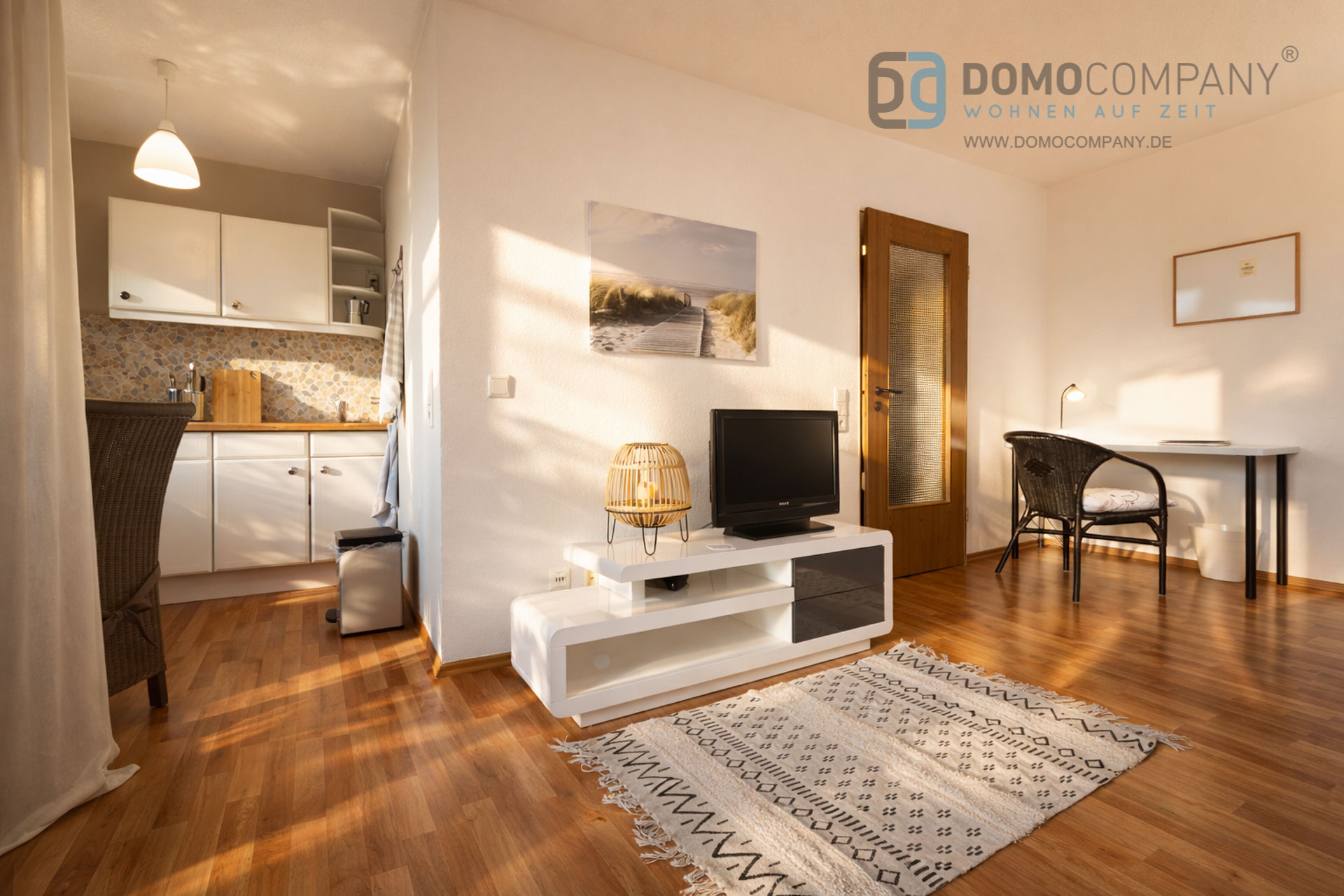 Hier bieten wir Ihnen eine komplett ausgestattete, sehr geschmackvoll eingerichtete 1-Zimmer-Wohnung mit großem Balkon, Tiefgaragenstellpatz, eigenem Keller und Internet. Ein Flatscreen TV mit Kabelfernsehen hier bereits vorhanden. Waschmaschine und Wäschetrockner stehen im Gemeinschaftskeller zur Mitbenutzung zur Verfügung. Für die Endreinigung werden EUR 75,- berechnet.