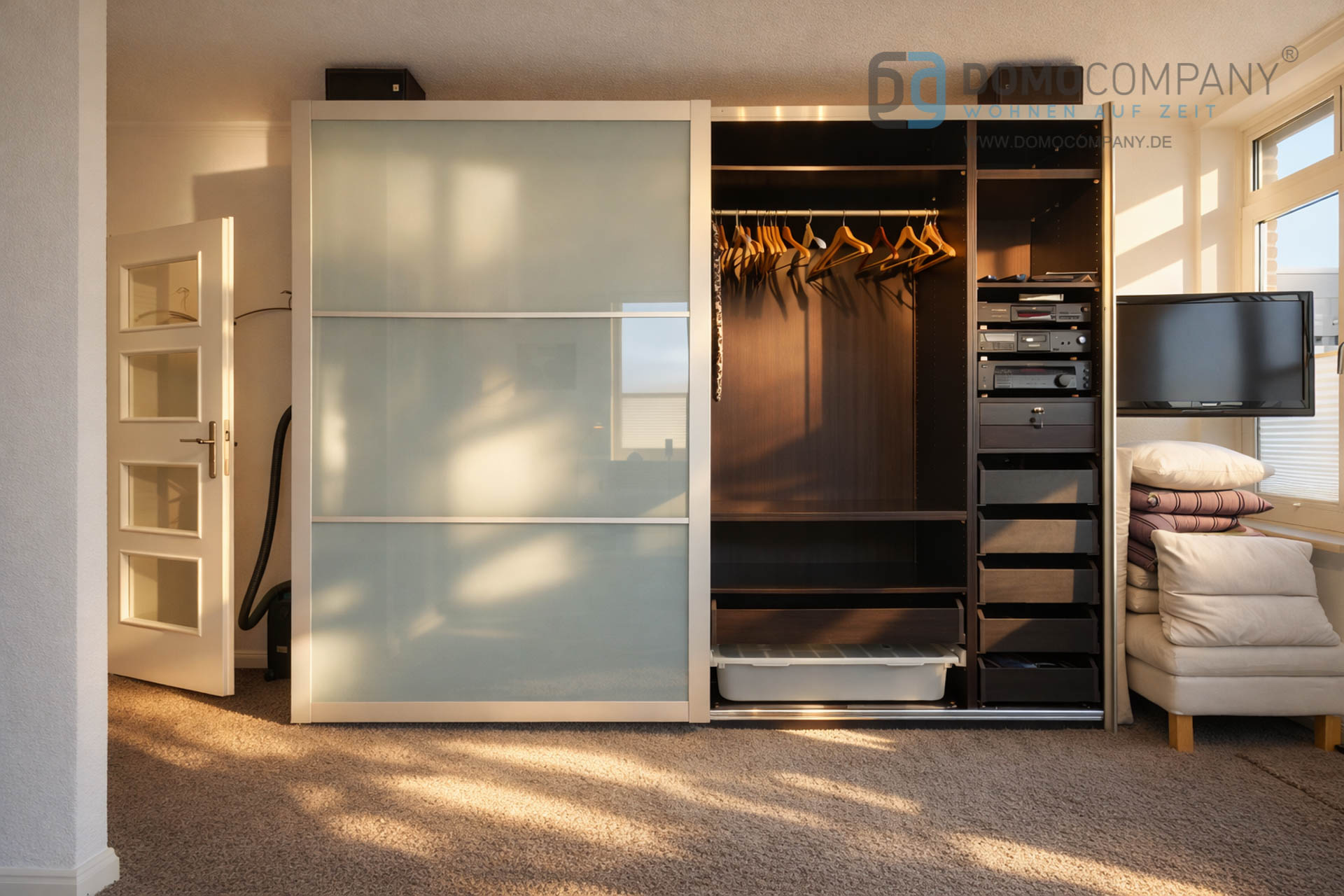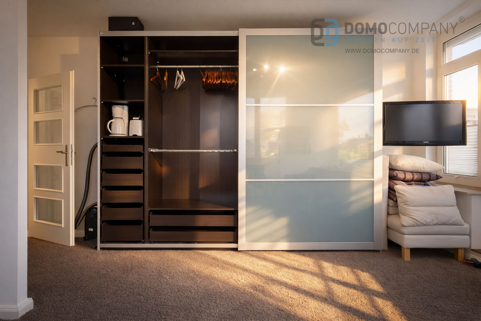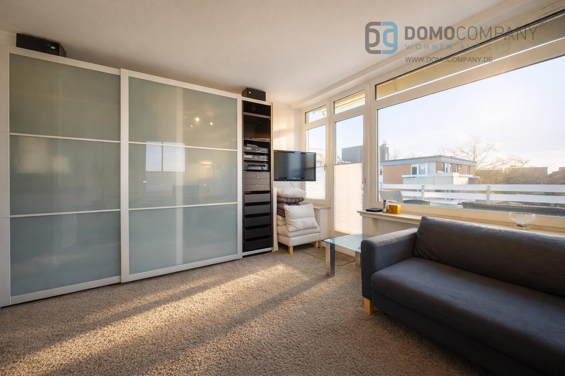 Hier bieten wir Ihnen ein helles, lichtdurchflutetes, voll möbliertes 1 Zimmer-Apartment mit großer Südterrasse in guter Wohnlage. Das Apartment verfügt über eine, in den Wohnraum integrierte Single-Küche mit Kühlschrank, Wrasenabzug, Ceranfeld und Mikrowelle, ein platzsparendes Schrankbett (1,35 m * 2, 20m), Schlafsofa, Schreibtisch, einen großen Kleiderschrank (3m) sowie ein voll ausgestattetes Bad mit Dusche und Wandheizkörper. Internet per WLAN, ein Flatscreen-TV mit Kabel-TV, eine Hifi-Anlage und sogar ein Gasgrill gehören ebenfalls zur gehobenen Ausstattung. Eine münzbetriebene Waschmaschine sowie ein münzbetriebener Wäschetrockner befinden sich im Keller des Hauses. Für die Endreinigng werden EUR 100,- berechnet. Ein Tiefgaragenstellplatz kann optional für 50,-€ pro Monat angemietet werden.