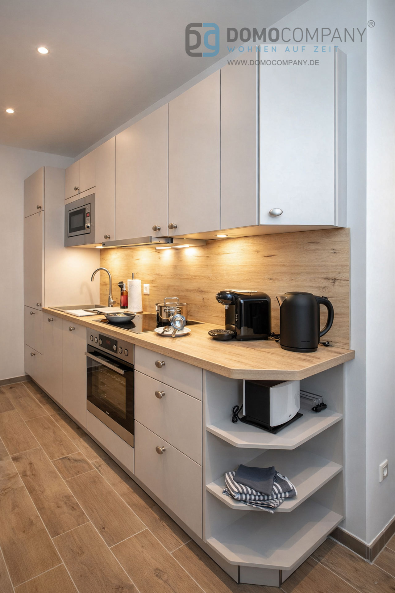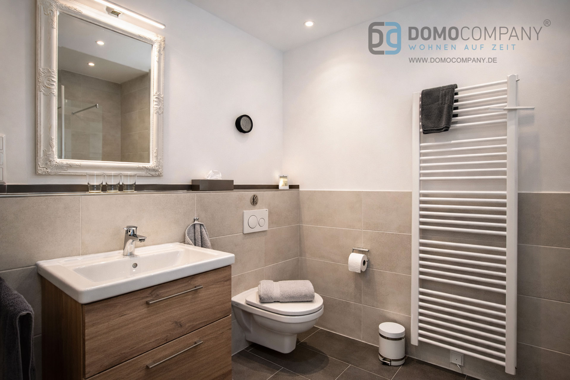 Hier bieten wir Ihnen eine schöne, voll möblierte Wohnung für den gehobenen Ansprüche in Warendorf. Die Wohnung befindet sich im Warendorfer Norden in einem ruhigen, aber dennoch verkehrsgünstig gelegenen Wohnviertel. Die Wohnung ist komplett und hochwertig ausgestattet und in Holzdielenoptik gefliest. Eine Fußbodenheizung sorgt für Behaglichkeit. Die Fenster sind mit Plissees sowie elektrischen Rollläden einschließlich Zeitschaltuhren versehen. Sie wohnen in einem kombinierten Küchen-, Ess- und Wohnbereich. Die liebevoll ausgesuchte Möblierung und geschmackvolle Dekoration laden zum Verweilen ein. Das Ledersofa verfügt über eine Schlaffunktion (mit separat integrierter Matratze). Für Unterhaltung sorgen ein Smart-TV sowie ein Smart-Radio. Dank vollständig ausgestatteter Einbauküche steht auch gemütlichen Kochabenden oder dem Verzehr von abgeholten / gelieferten Speisen nichts im Wege.Das Bad verfügt über einen Tageslichtspot nebst elektronischem Entlüftungssystem. Es ist mit einer ebenerdigen Dusche mit Echtglastrennwänden, Waschtischunterschrank sowie einem Handtuchheizkörper ausgestattet.Im separaten Schlafzimmer mit Doppelbett und integrierten Leselampen sorgen hochwertige Matratzen und verstellbare Lattenroste für einen erholsamen Schlaf. Wertgegenstände können sicher in einem Möbeltresor untergebracht werden.Die Wohnung verfügt über einen Abstellraum nebst Einbauschrank. Ein Lebensmitteldiscounter, Apotheke sowie ein Facharztzentrum sind fußläufig erreichbar. Erholung bietet ein nahegelegener Wald mit Spazierwegen und wunderbaren Joggingstrecken. Ein gut ausgebautes Netz an Radwegen (z. B. entlang der Ems) lädt zu erlebnisreichen Radtouren ein.Die historische Warendorfer Altstadt mit ihren gemütlichen Restaurants und Cafés sowie zahlreichen Geschäften erreichen Sie in ca. 1,5 km. Ab ca. Mai 2021 steht eine eigene Terrasse zur Verfügung. Der Mietpreis beinhaltet bereits eine 14-tägige Zwischenreinigung. Für die Endreinigung werden EUR 150,- berechnet.Vor dem Gebäude steht Ihnen ein reservierter Stellplatz zur Verfügung.Ein Energieausweis wird in Kürze nachgereicht.